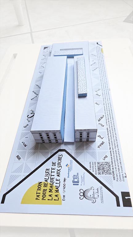 L'atelier a eu le plaisir de concevoir et réaliser le kit maquette de la Halle aux Sucres de Dunkerque. Ce kit est à réaliser en toute autonomie à la maison ou sur place pour clôturer la visite du lieu et mieux comprendre celui-ci.